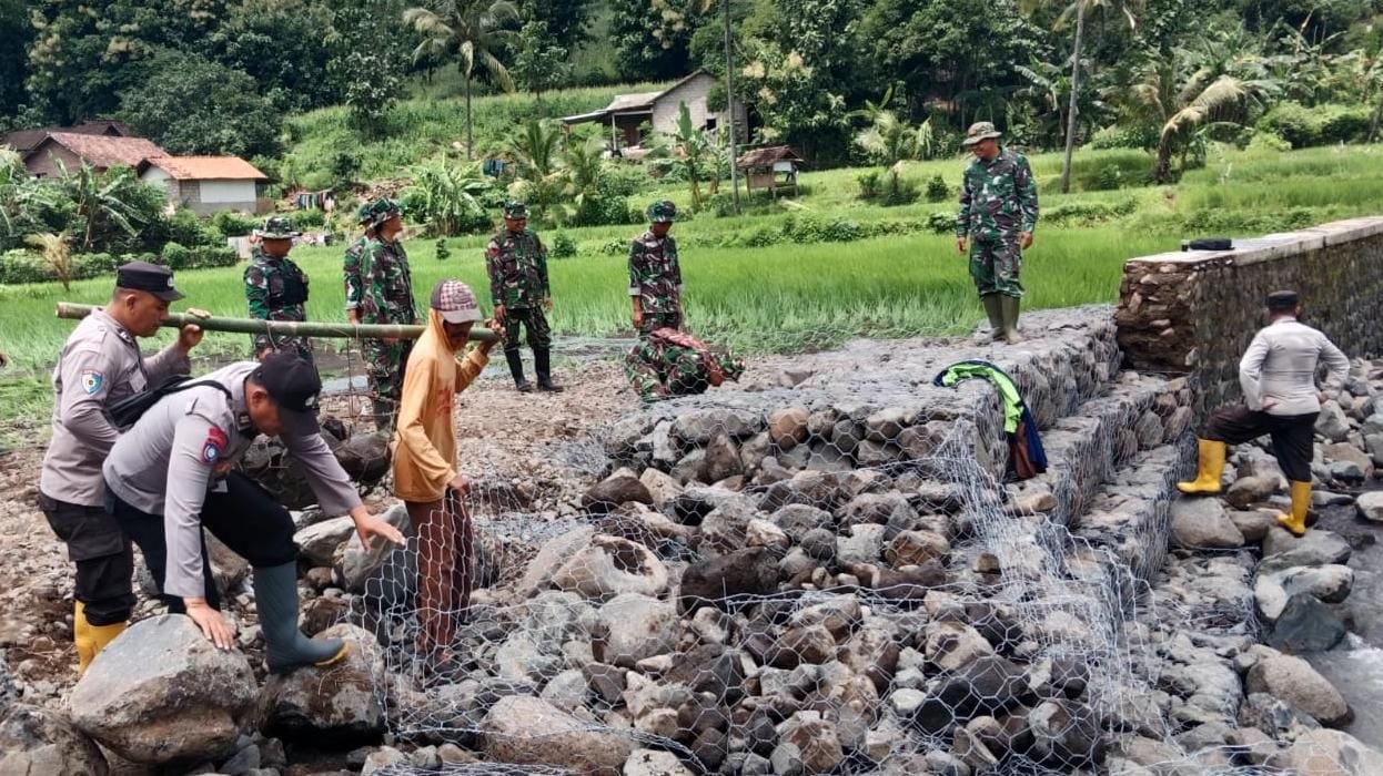 “Bronjong penangkis banjir yang kita buat bersama telah selesai 100% sepanjang 14 M dan tinggi 2,5 M,” terang Iptu Bobby.